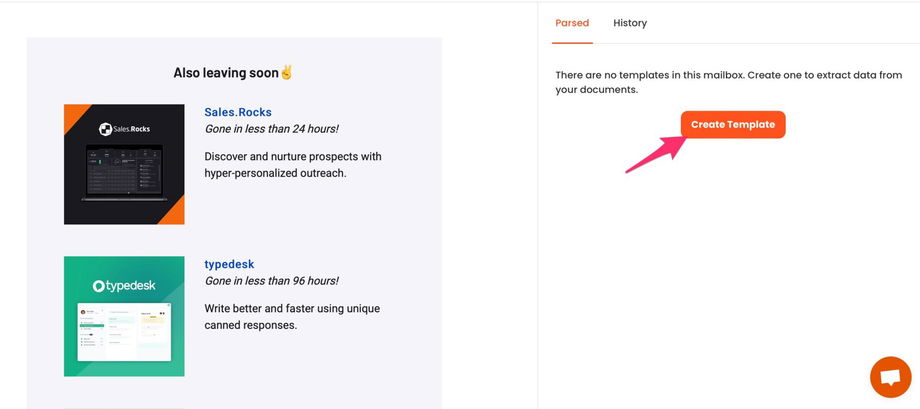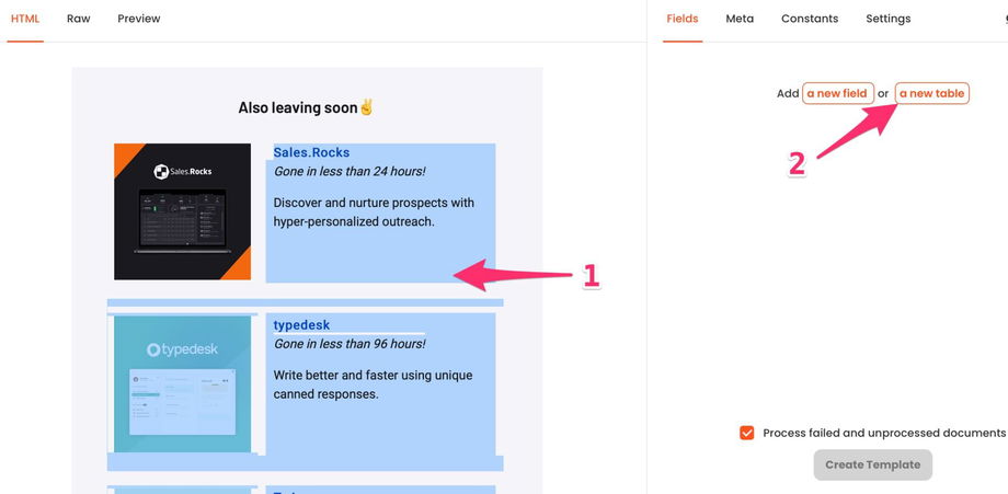 Take an email with repetitive data you would like to extract and click on “Create a template”.