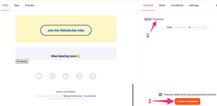 6. You will now see your table name as "field 1". Rename it and then click on "Create template".