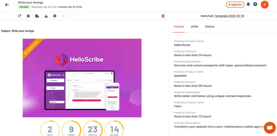 7. Parsio will process your email within a few seconds. All the name and the description fields should now match perfectly.