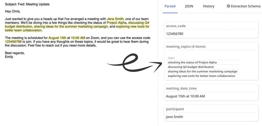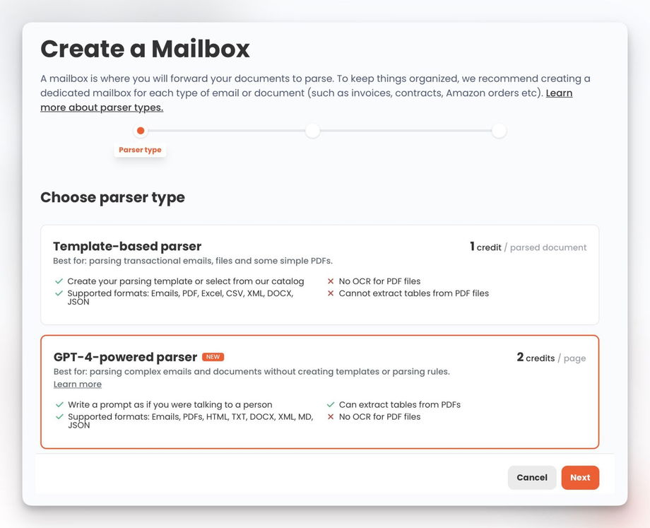 The GPT-powered parser allows you to extract structured data from emails, PDFs, and files using a text prompt (similar to ChatGPT).