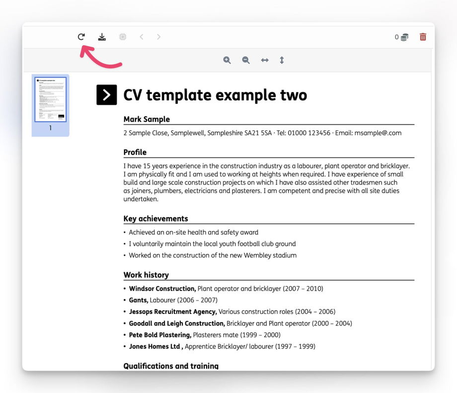 5. If the parsed result looks correct, you can finally parse your CV by clicking the "Reprocess" button.