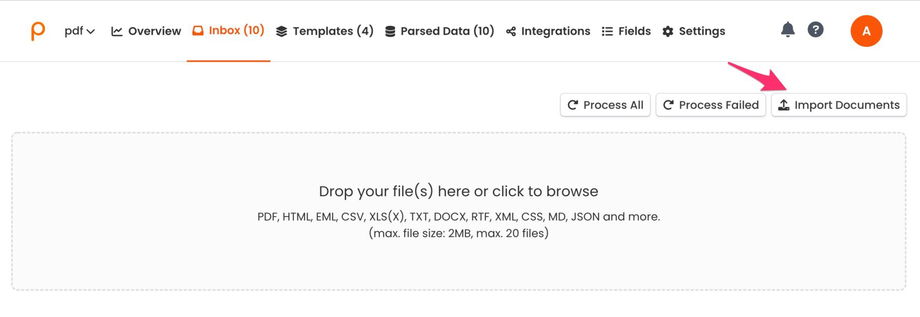Once the PDF files appear in your Parsio inbox, you'll need to create a parsing template. This process is very similar to creating an email parsing template.